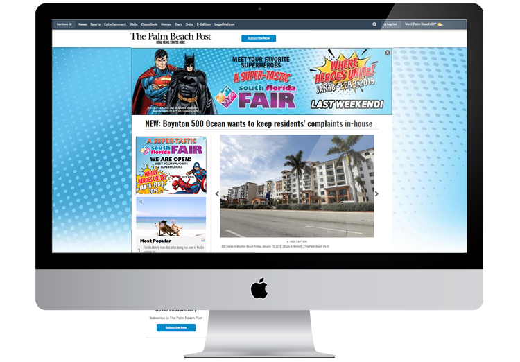 Having a presence on the PalmBeachPost.com allows you to get in front of potential prospects as they’re browsing through their local news. We are the main source for digital news in the community, and we continue to deliver high value, trusted content and engaging stories.